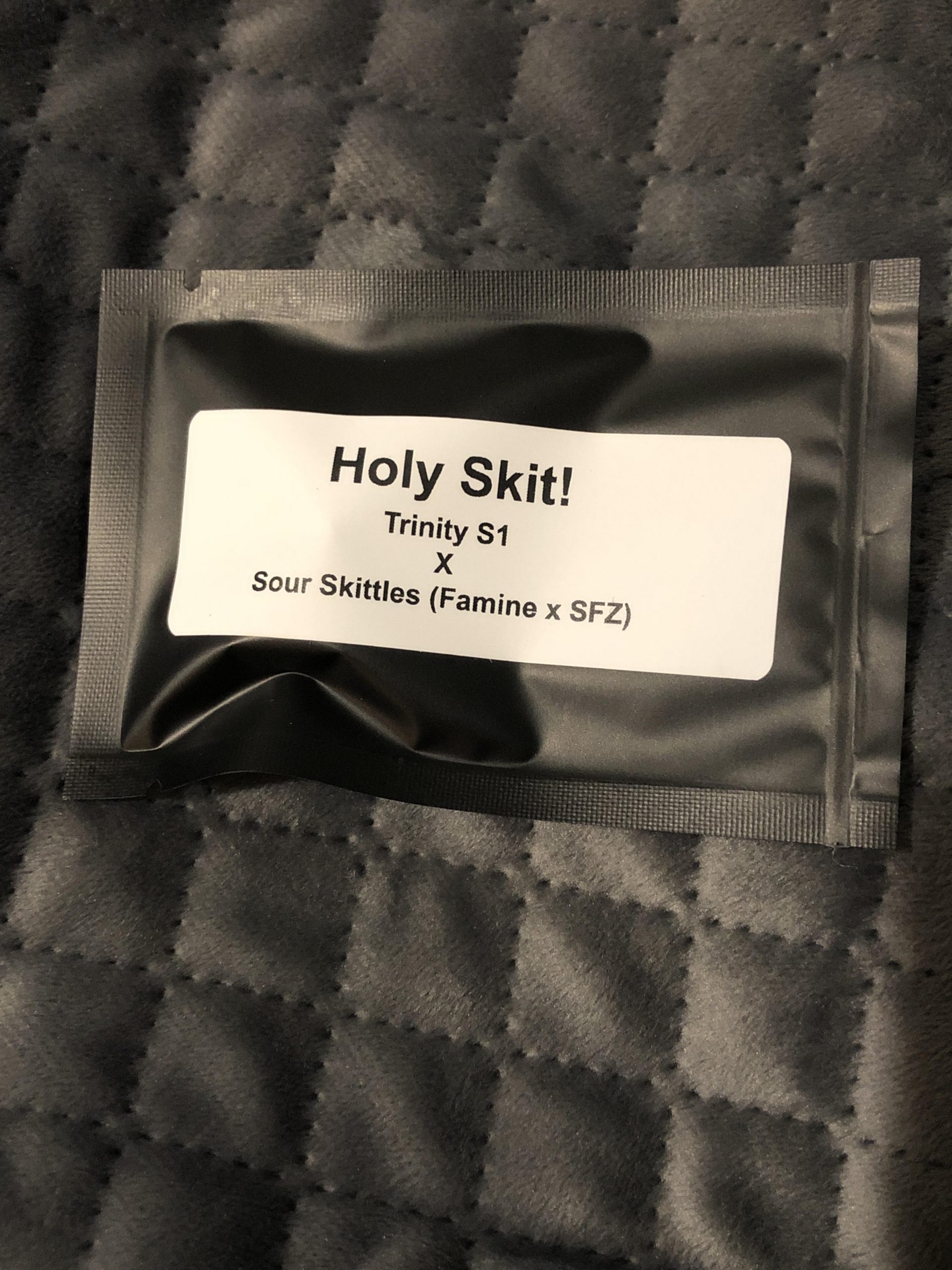 Trinity is an old school PNW variety that has a heavy skunk smell and an killer full bodied effect with lots of red eyes. Genetic breakdown for Sour Skittles is (Famine x SFZ). Famine is from Inkognyto and it is a cross of (Chem 3 x Pestilence). SFZ is (San Fernando Valley OG Kush x Watermelon Zum Zum).